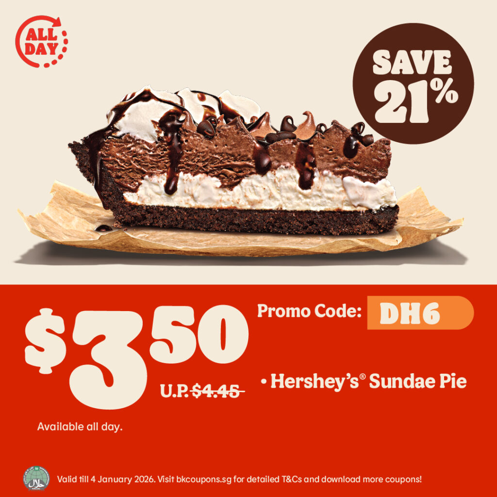 Valid till 4 Jan 2026 or while stock last. Available at any time of the day. No customisation or changes are allowed. Key in coupon code via the Kiosk (Use Coupon) to enjoy these deals. Not valid for redemption over the drive-through counter. Not valid at all Changi Airport stores.Not valid with other promotions, discounts, catering, bulk order and BK Delivery. Price is correct at the time of print, U.P. calculation is based on ala carte price.